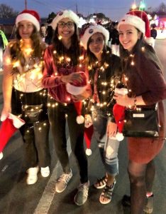 Seven ICES exchange students from Brazil, Finland, Italy, Spain and Germany recently participated in the Weihnachts Parade in Boerne, TX. The theme was Rockin Around the Christmas Tree. The students were decorated in battery powered tiny Christmas lights and Santa hats and handed out candy canes while walking in the parade.
