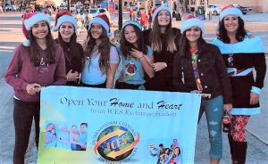 Seven ICES exchange students from Brazil, Finland, Italy, Spain and Germany recently participated in the Weihnachts Parade in Boerne, TX. The theme was Rockin Around the Christmas Tree. The students were decorated in battery powered tiny Christmas lights and Santa hats and handed out candy canes while walking in the parade.